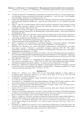 13. Abdishukur O. A. Study of the Impact of the International Student Cultural Festival on the Local Integration of International Students Visiting China: The Mediating Effect of Embodied Experience // Open Journal of Business and Management. 2023.