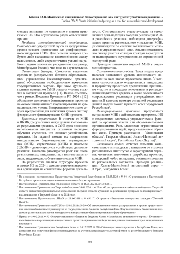 19. Сафронова Е. С. Особенности практической реализации инициативного бюджетирования в Российской Федерации // Дискуссия. 2024. № 3 (124). С. 91-98.