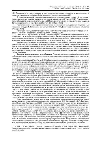 2. Володенков С.В. Нейросетевые алгоритмы в актуальных процессах трансформации традиционных мировоззренческих и идеологических систем // Контуры глобальных трансформаций: политика, экономика, право. 2024. Т. 17, № 2. C. 6-30. https://doi.org/10.31249/kgt/2024.02.01.