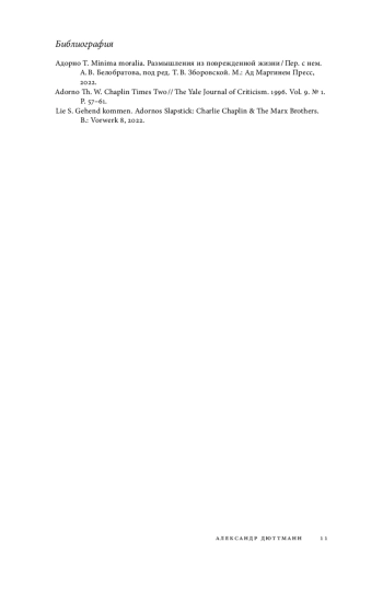 2. Adorno Th. W. Chaplin Times Two // The Yale Journal of Criticism. 1996. Vol. 9. № 1. P. 57-61.