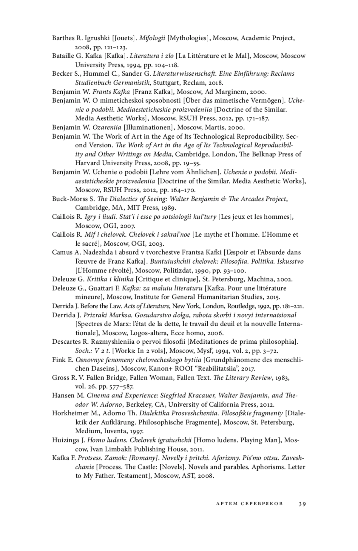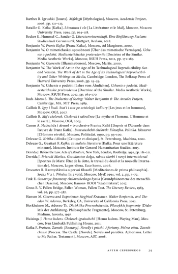 12. Беньямин В. Франц Кафка. М.: Ad Marginem, 2000.