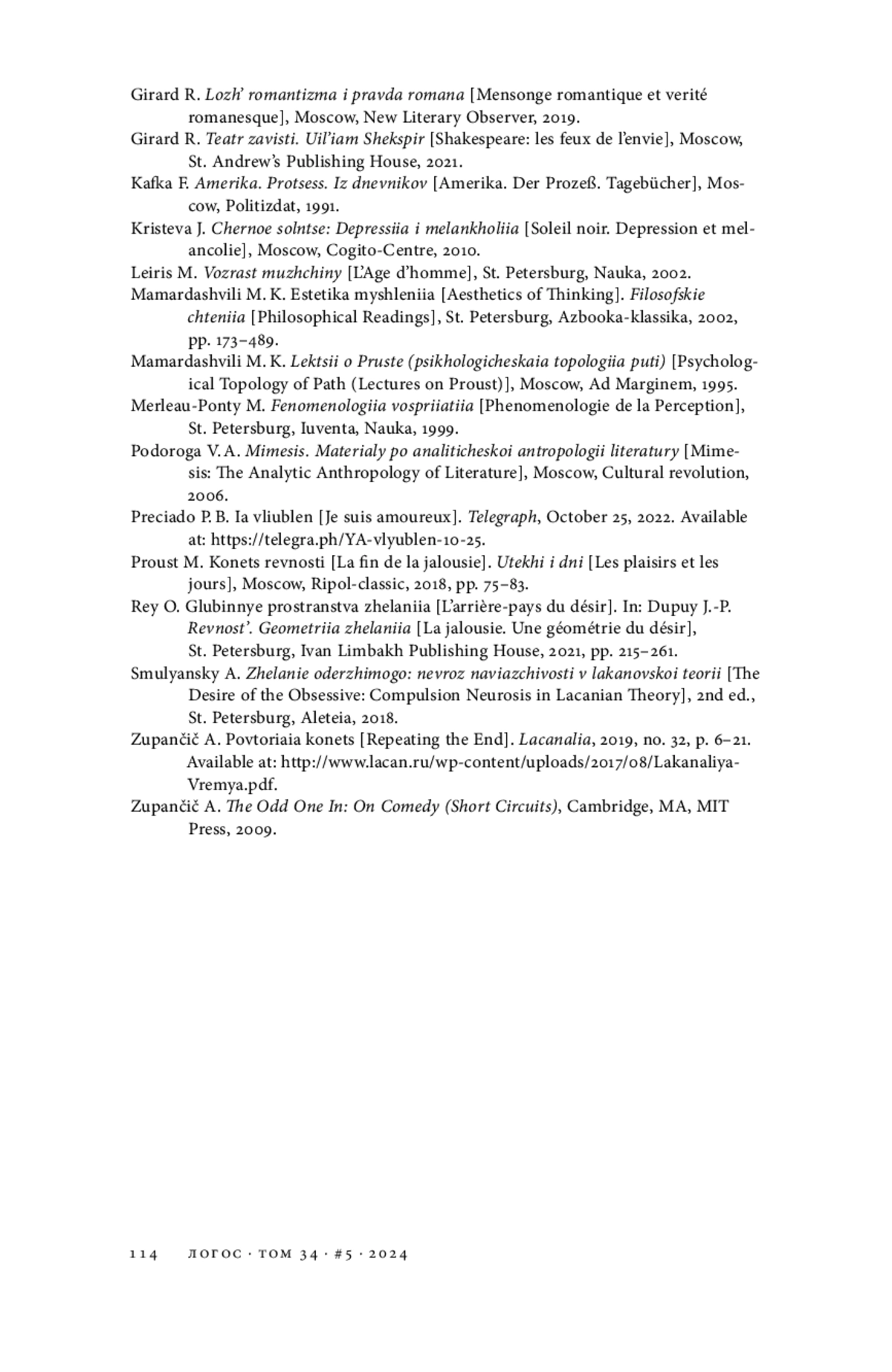 21. Рей О. Глубинные пространства желания // Дюпюи Ж.-П. Ревность. Геометрия желания / Послесл. О. Рея; пер. с фр. А. Н. Смирновой. СПб.: Издательство Ивана Лимбаха, 2021. С. 215-261.