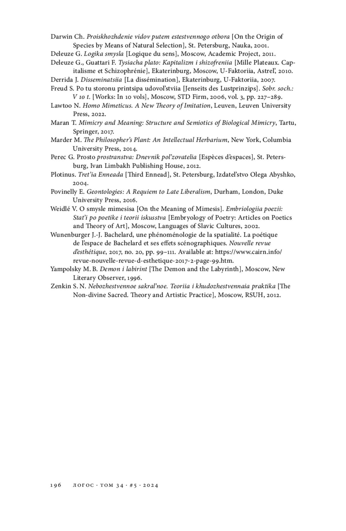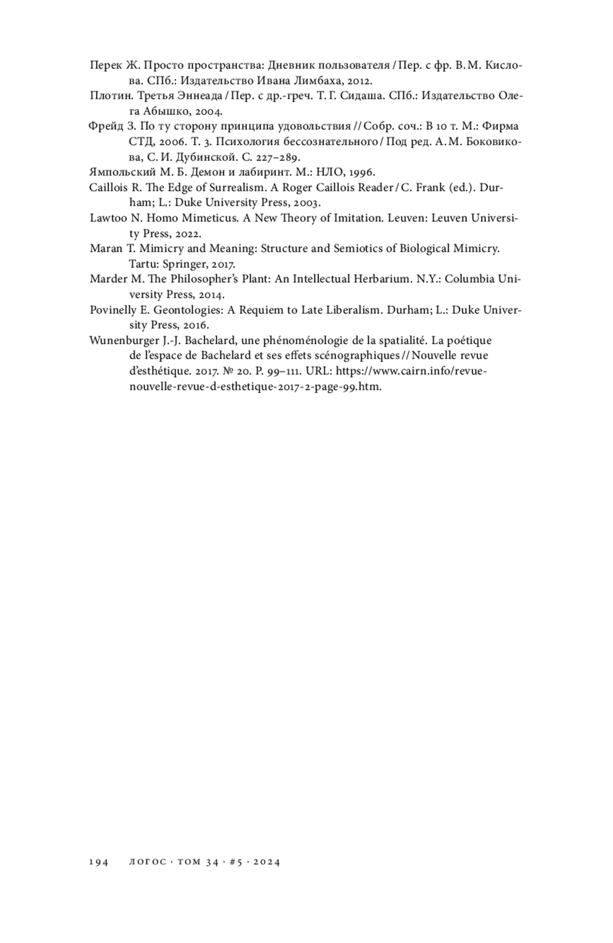 5. Башляр Г. Поэтика пространства. М.: Ад Маргинем Пресс; Музей современного искусства “Гараж”, 2020.