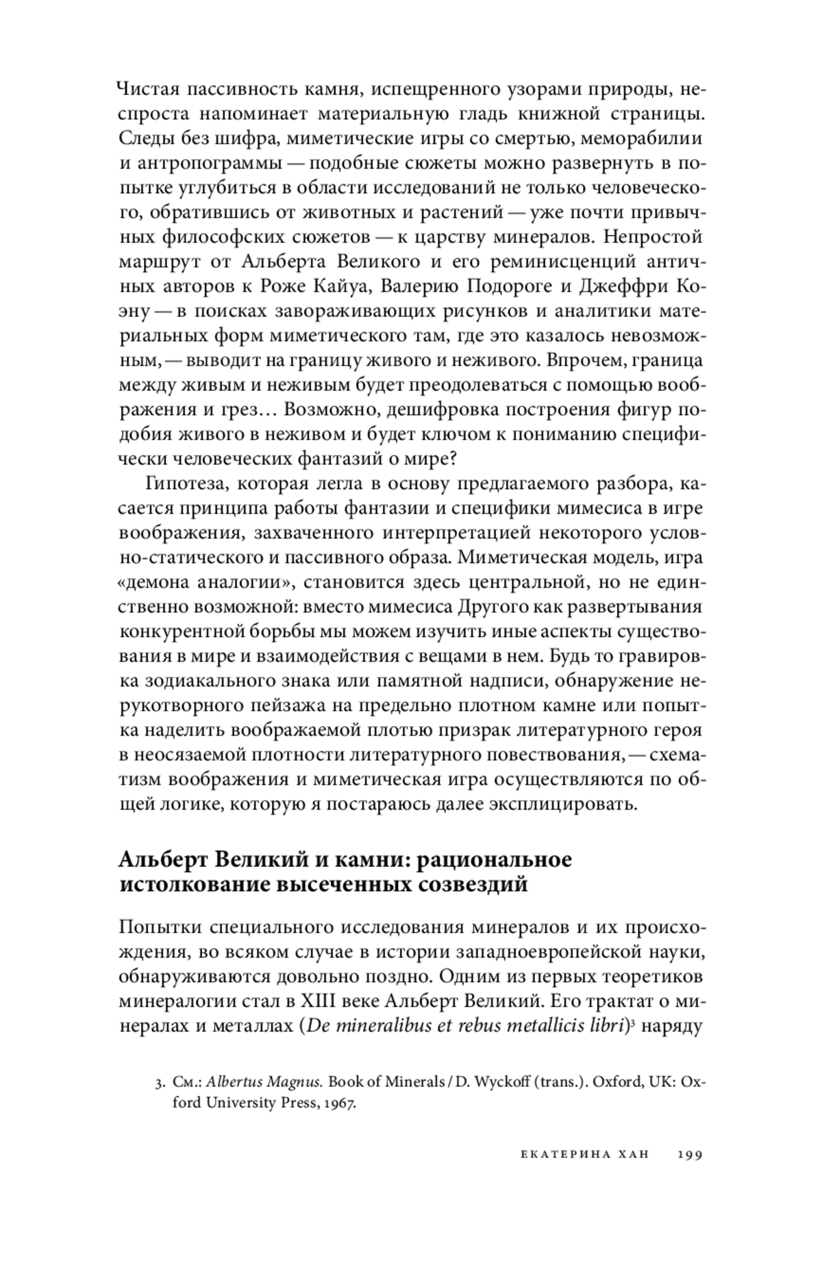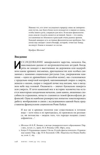 Исследование минерального царства, казалось бы, максимально далеко от антропологических штудий. Когда речь не заходит о высеченных на дорожном или надгробном камне древних письменах, драгоценностях или особых связанных с камнями социальных ритуалах (так, умерщвление камнями — один из древнейших способов казни), мы сталкиваемся с предельно инертной материей, напоминающей скорее о смерти, нежели о жизни, скорее о твердой почве под ногами, чем о звездном небе над головой. Окаменеть — значит буквально замереть или умереть. И хотя каменный век в истории человечества остается некоторым загадочным началом, сами камни, лишенные способности отражения, нечасто становятся темой философских рефлексий. Одна из наиболее развернутых попыток тематизировать работу воображения в связи с исследованием камней была представлена французским социологом Роже Кайуа