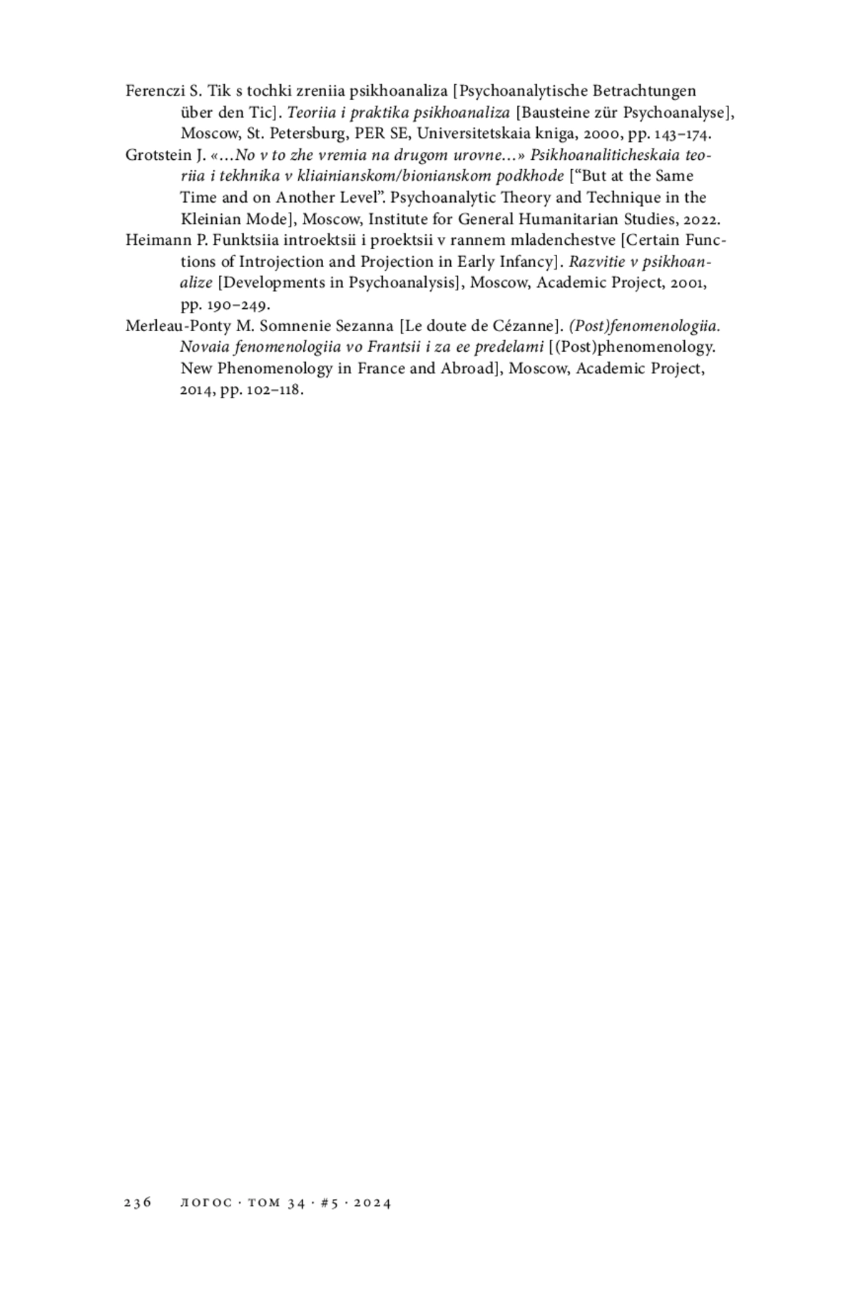 10. Ференци Ш. К определению понятия интроекции // Он же. Теория и практика психоанализа. М.; СПб.: ПЕР СЭ; Университетская книга, 2000. С. 45-47.