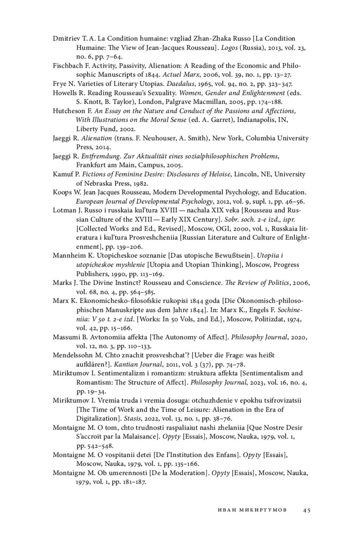 7. Дмитриев Т. А. La Condition humaine: взгляд Жан-Жака Руссо // Логос. 2013. Т. 23. № 6. С. 7-64.