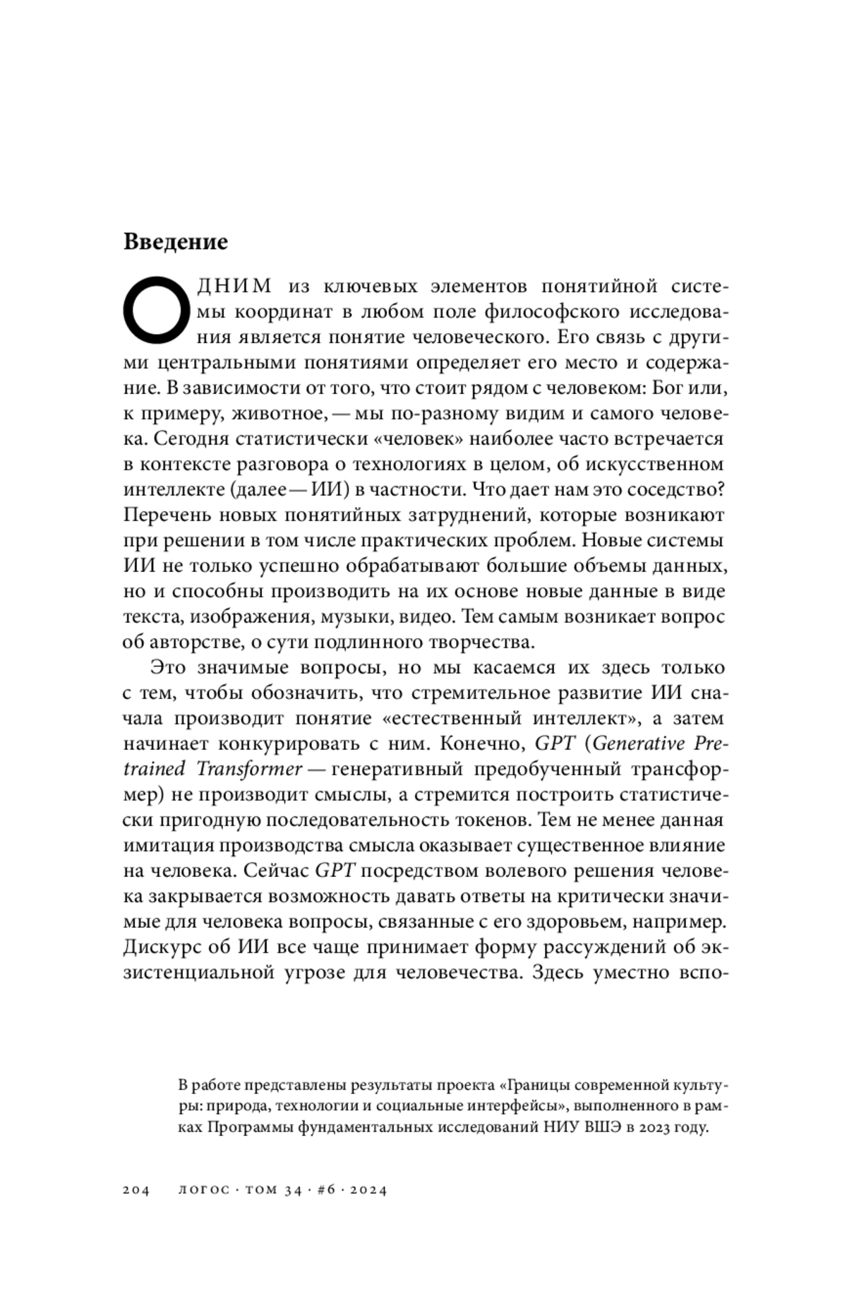 Одним из ключевых элементов понятийной системы координат в любом поле философского исследования является понятие человеческого. Его связь с другими центральными понятиями определяет его место и содержание. В зависимости от того, что стоит рядом с человеком: Бог или, к примеру, животное, — мы по-разному видим и самого человека. Сегодня статистически «человек» наиболее часто встречается в контексте разговора о технологиях в целом, об искусственном интеллекте (далее — ИИ) в частности. Что дает нам это соседство? Перечень новых понятийных затруднений, которые возникают при решении в том числе практических проблем. Новые системы ИИ не только успешно обрабатывают большие объемы данных, но и способны производить на их основе новые данные в виде текста, изображения, музыки, видео. Тем самым возникает вопрос об авторстве, о сути подлинного творчества