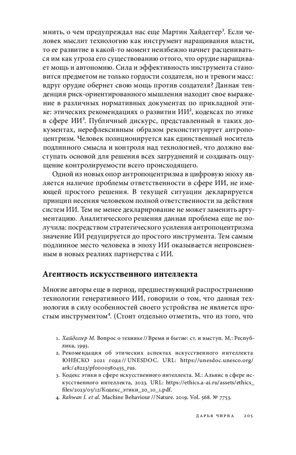 12. Rahwan I, Cebrian M., Obradovich N., Bongard J., Bonnefon J.-F., Breazeal C., Crandall J. W., Christakis N. A., Couzin I. D., Jackson M. O., Jennings N. R., Kamar E., Kloumann I. M., Larochelle H., Lazer D., McElreath R., Mislove A., Parkes D. C., Pentland A., Roberts M. E., Shariff A., Tenenbaum J. B., Wellman M. Machine Behaviour // Nature. 2019. Vol. 568. № 7753. P. 477-486.