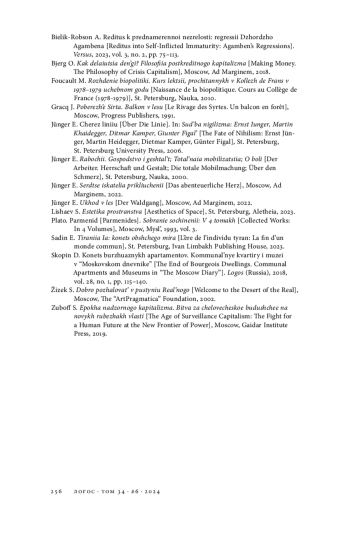 6. Билик-Робсон А. Reditus к преднамеренной незрелости: регрессии Джорджо Агамбена // Versus. 2023. Т. 3. № 2. С. 75-113. EDN: USNIWM