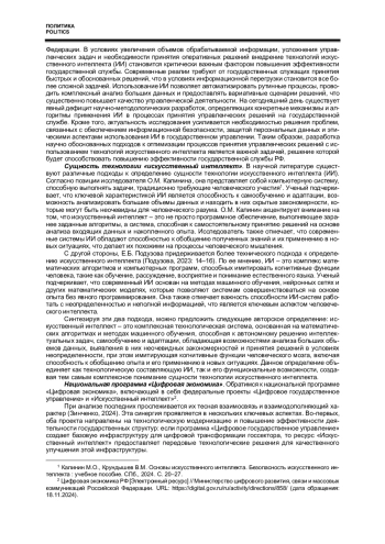 2. Карпова С.А. Искусственный интеллект как инструмент обеспечения национальной безопасности // Проблемы региональной и глобальной безопасности в современном мире. Владимир, 2023. С. 144-147.