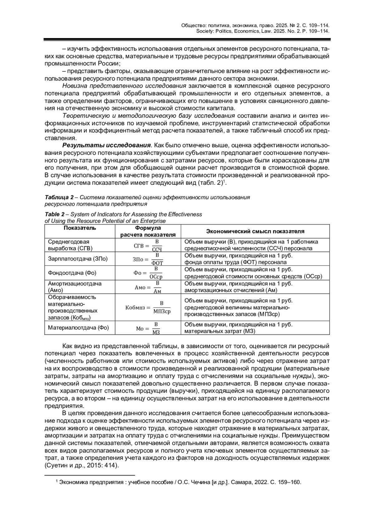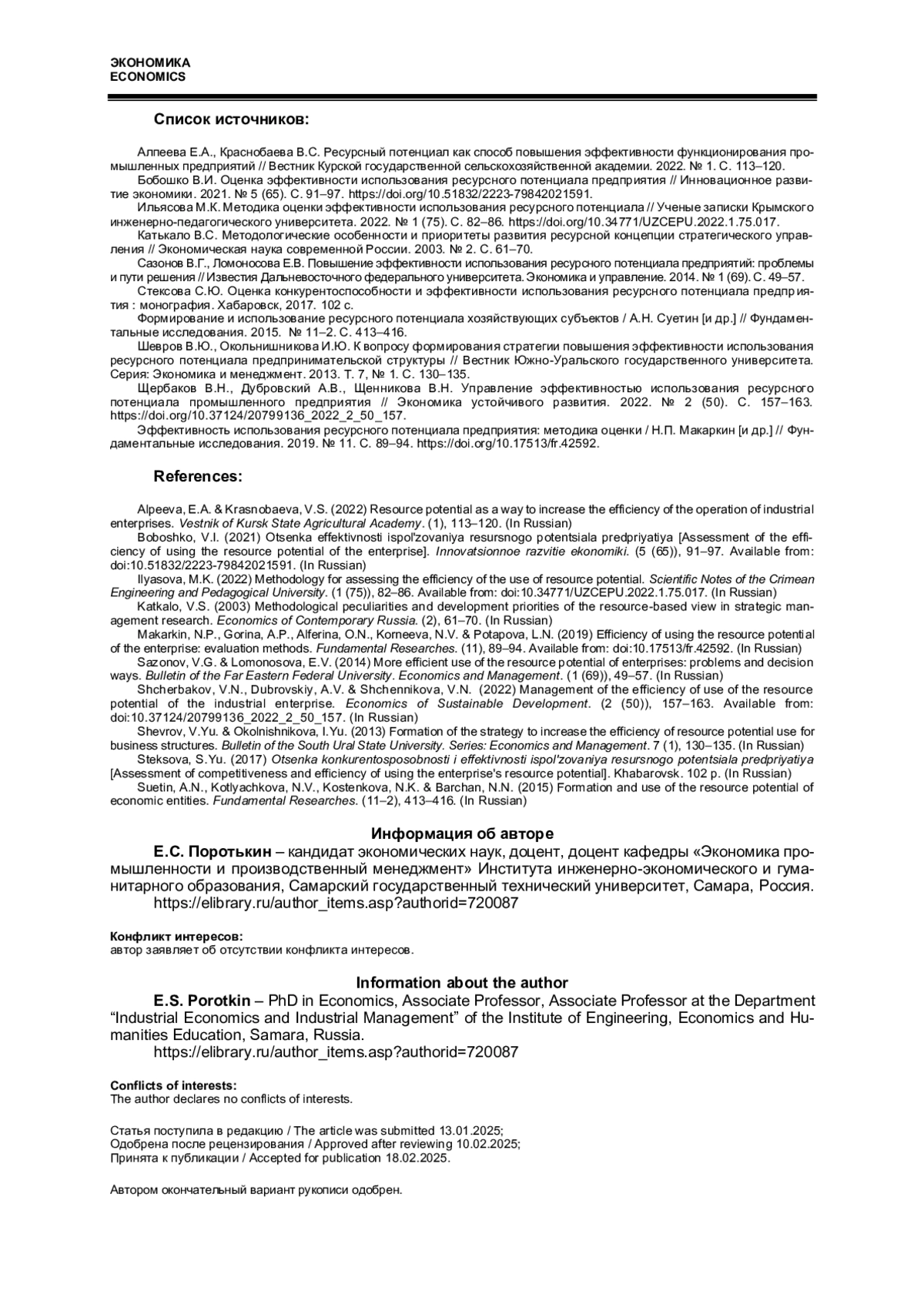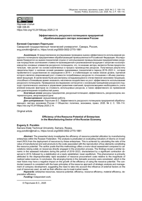 2. Бобошко В.И. Оценка эффективности использования ресурсного потенциала предприятия // Инновационное развитие экономики. 2021. № 5 (65). С. 91-97. DOI: 10.51832/2223-79842021591 EDN: LVRESH
