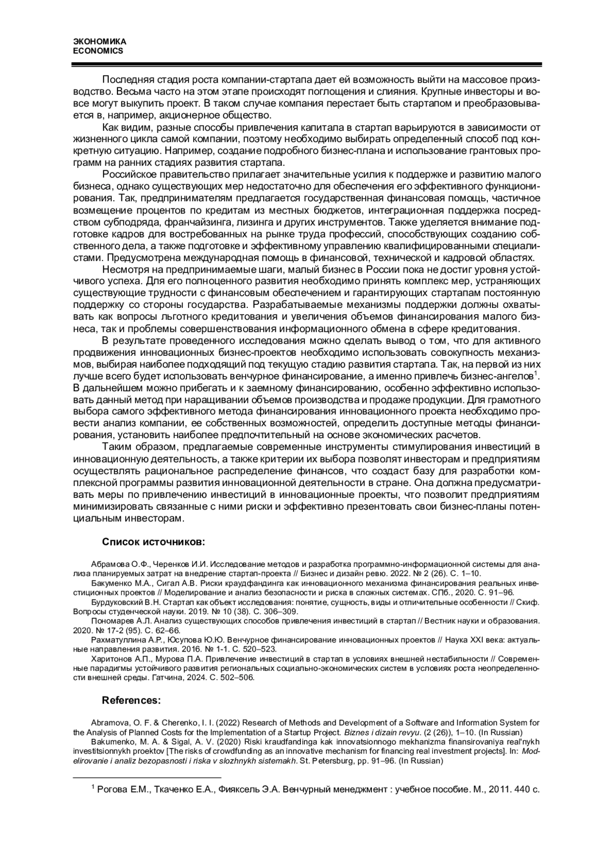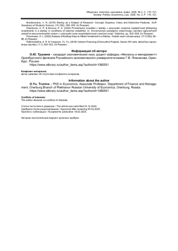 6. Харитонов А.П., Мурова П.А. Привлечение инвестиций в стартап в условиях внешней нестабильности // Современные парадигмы устойчивого развития региональных социально-экономических систем в условиях роста неопределенности внешней среды. Гатчина, 2024. С. 502-506. EDN: LWYIHC