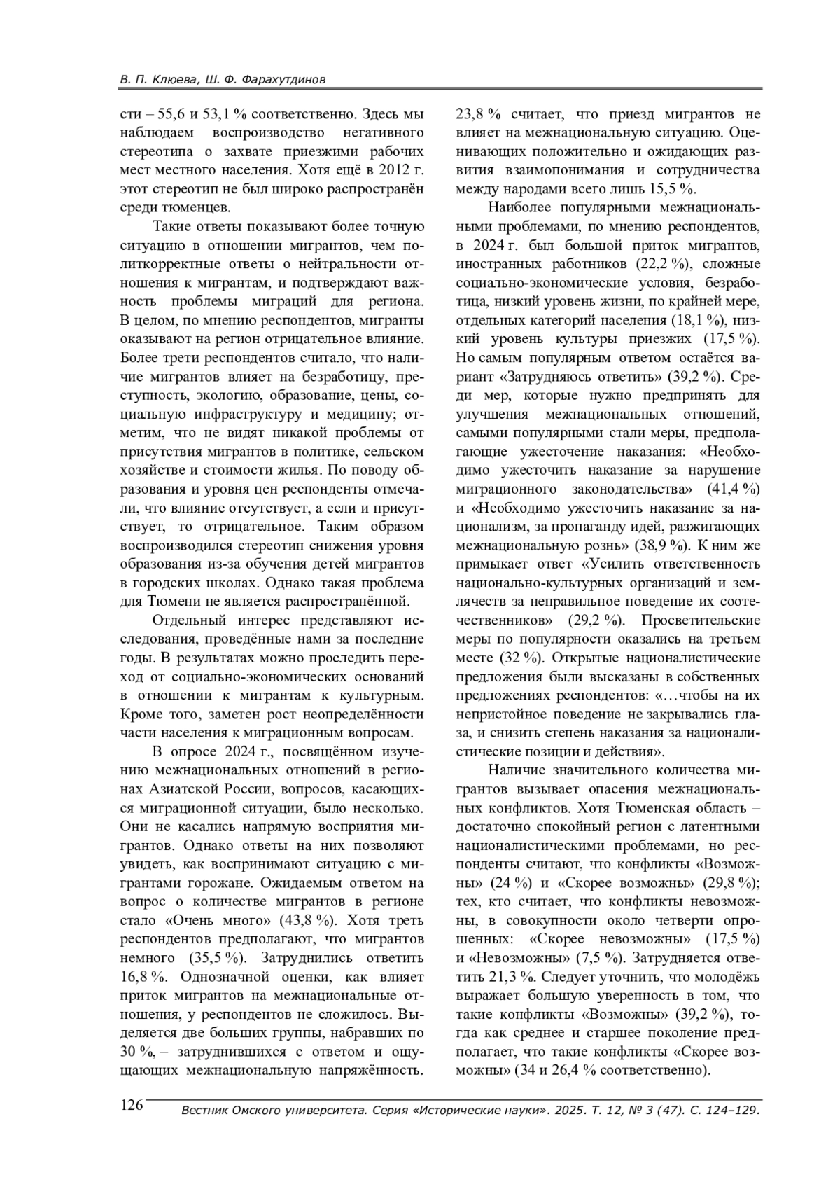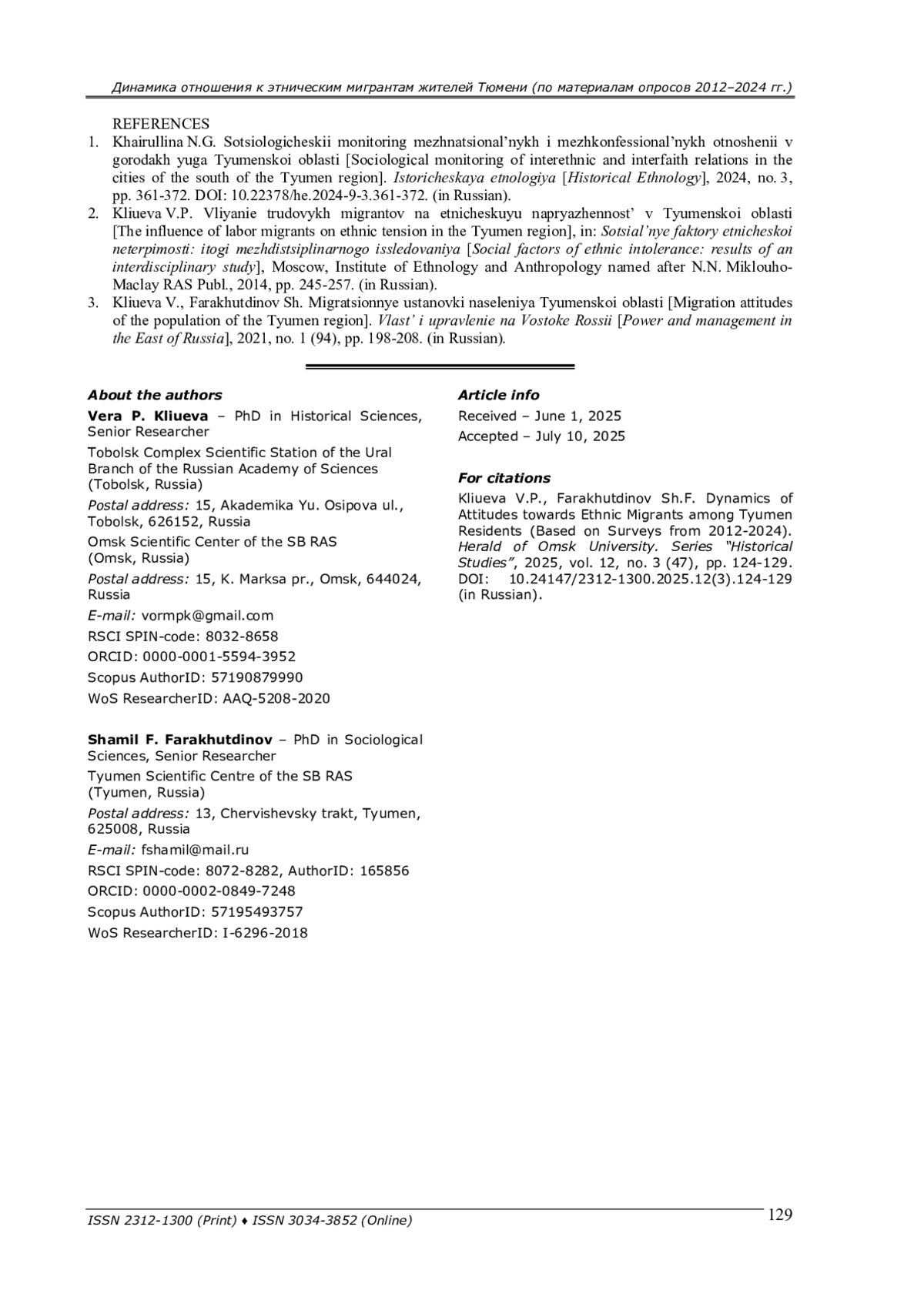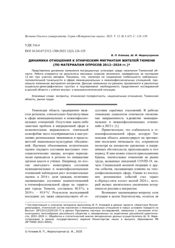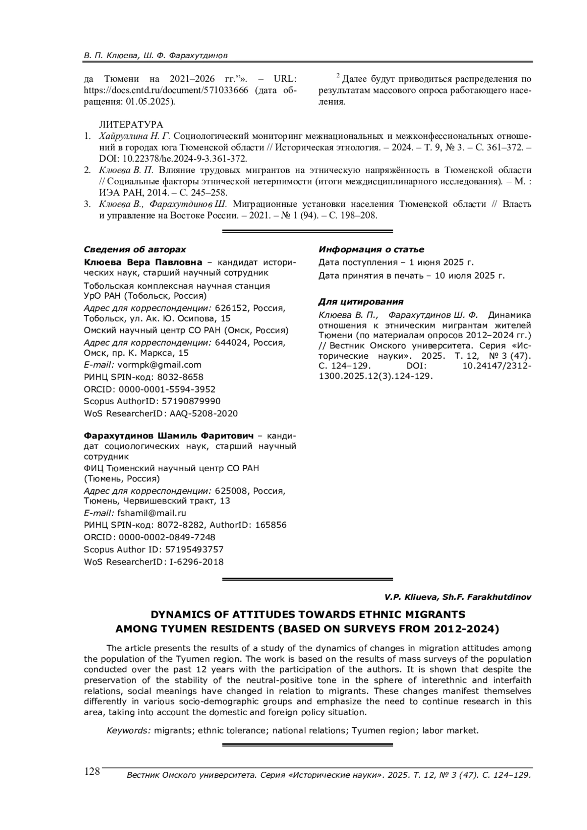 3. Клюева В., Фарахутдинов Ш. Миграционные установки населения Тюменской области // Власть и управление на Востоке России. - 2021. - № 1 (94). - С. 198-208. EDN: FXYBAT