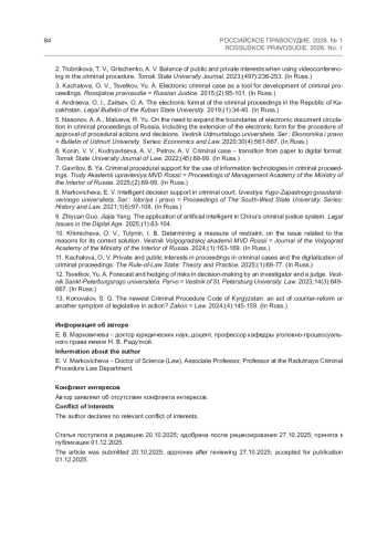 7. Gavrilov, B. Ya. Criminal procedural support for the use of information technologies in criminal proceedings. Trudy Akademii upravleniya MVD Rossii = Proceedings of Management Academy of the Ministry of the Interior of Russia. 2025;(2):89-99. (In Russ.).