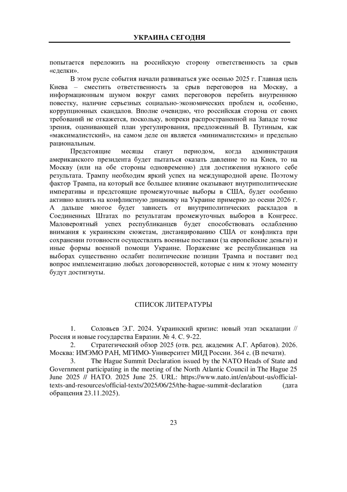 2. Стратегический обзор 2025 (отв. ред. академик А.Г. Арбатов). 2026. Москва: ИМЭМО РАН, МГИМО-Университет МИД России. 364 с. (В печати).