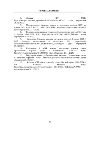 7. Минэкономики Украины заявило о рекордном падении ВВП по итогам 2022 года // ТАСС. 05.01.2023. URL: https://tass.ru/ekonomika/16743525 (дата обращения 27.11.2025).
