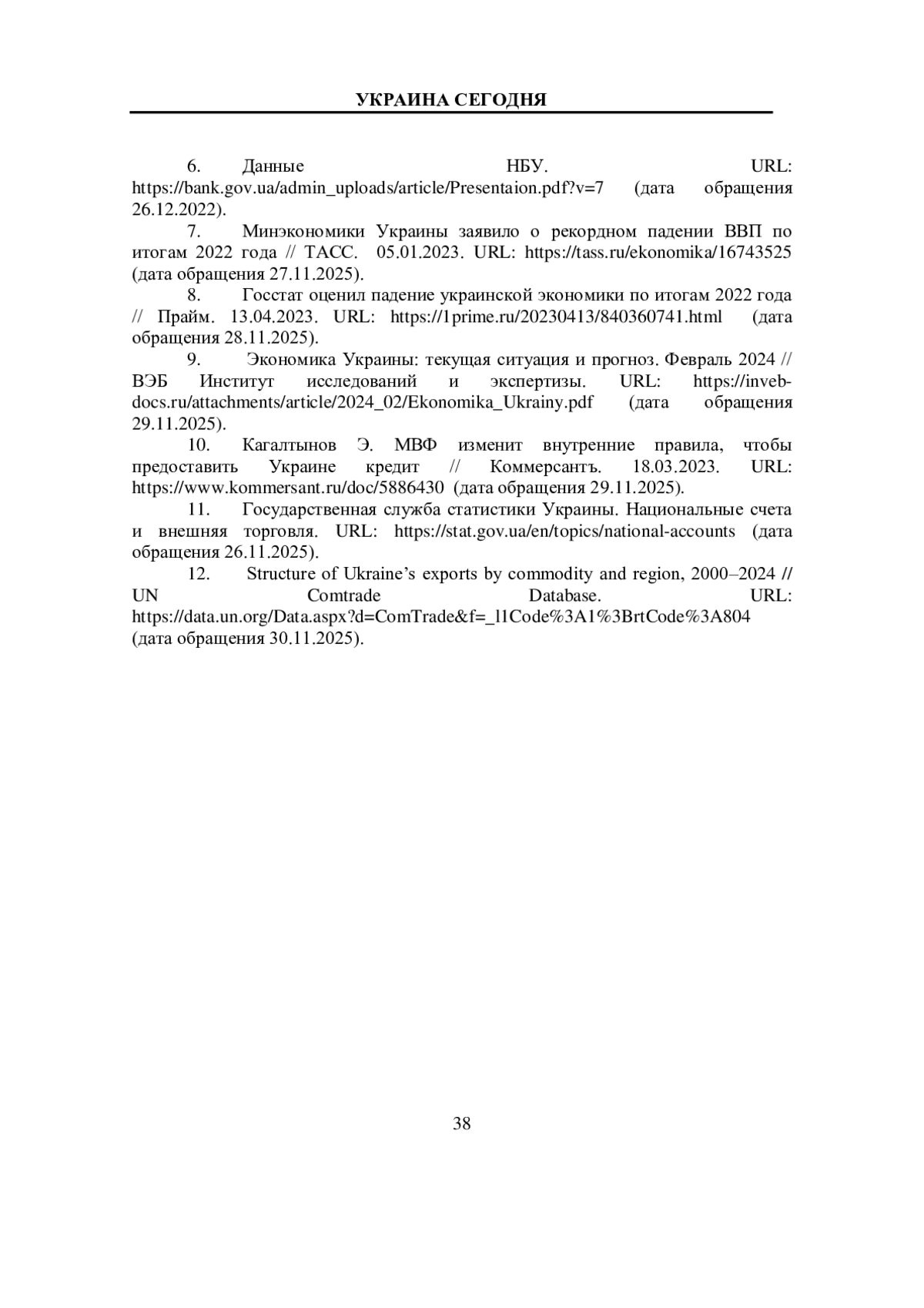9. Экономика Украины: текущая ситуация и прогноз. Февраль 2024 // ВЭБ Институт исследований и экспертизы. URL: https://inveb-docs.ru/attachments/article/2024_02/Ekonomika_Ukrainy.pdf (дата обращения 29.11.2025).