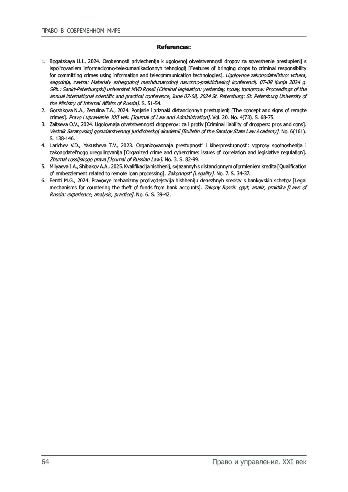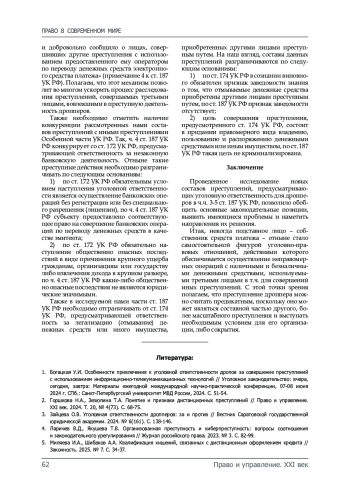 5. Миляева И.А., Шибаков А.А. Квалификация хищений, связанных с дистанционным оформлением кредита // Законность. 2025. № 7. С. 34-37.