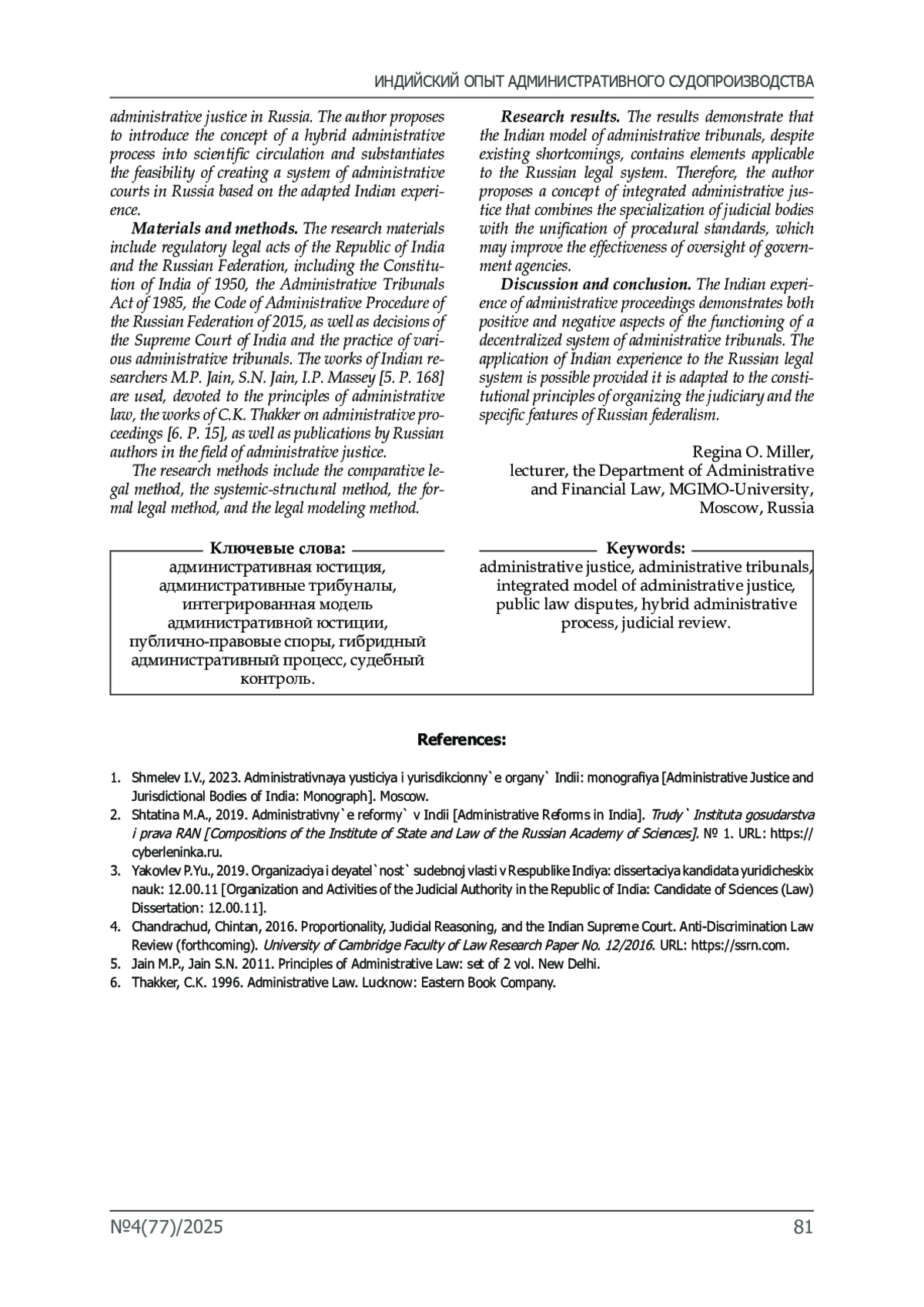 1. Шмелёв И.В. Административная юстиция и юрисдикционные органы Индии: монография. М., 2023.