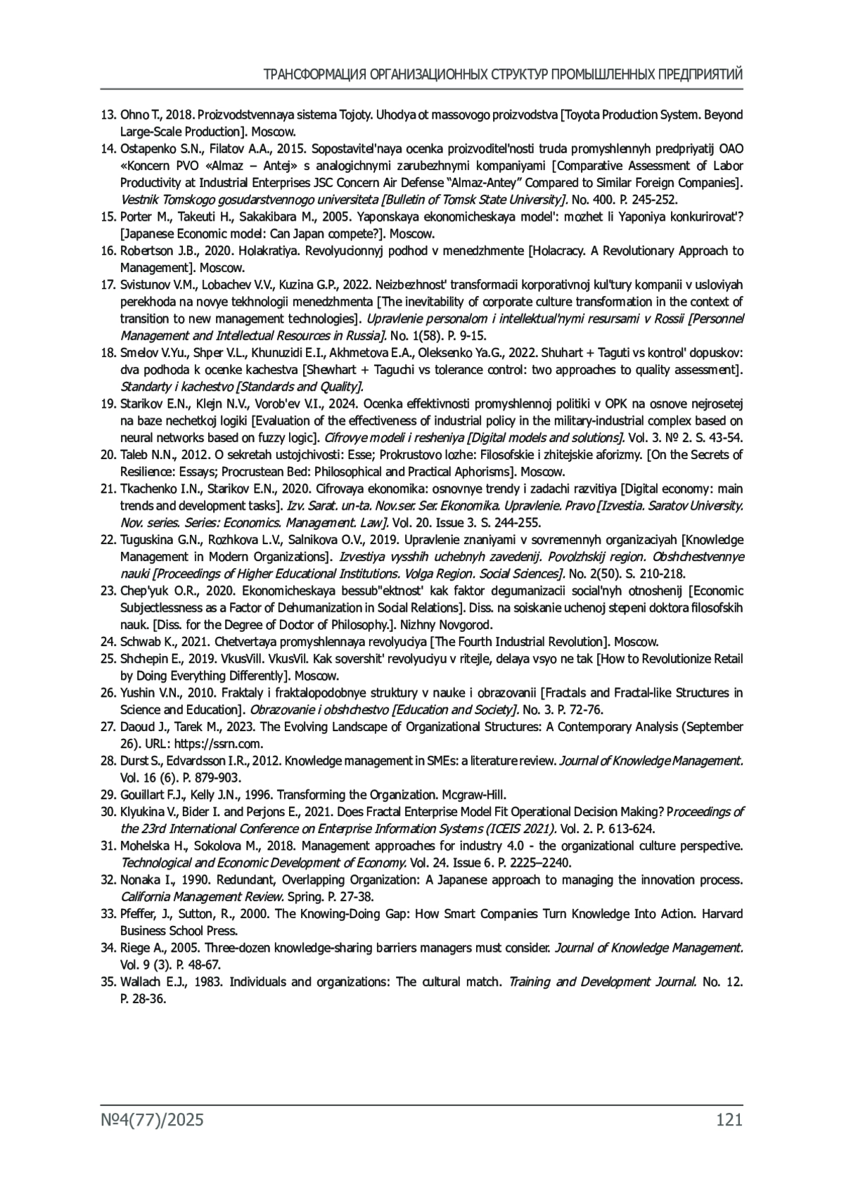 28. Durst S., Edvardsson I.R. Knowledge management in SMEs: a literature review // Journal of Knowledge Management. 2012. Vol. 16(6). P. 879-903.