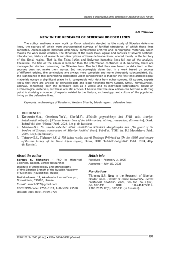 3. Татауров С. Ф., Тихонов С. С. К 400-летию русской истории Омского Прииртышья. - Омск: ООО “Издатель-Полиграфист”, 2024. - 40 с.