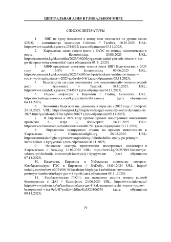 7. В Киргизии в 2024 году приток прямых иностранных инвестиций превысил $1 млрд // Финмаркет. 06.10.2025. URL: https://www.finmarket.ru/database/news/6486750 (дата обращения 05.11.2025).