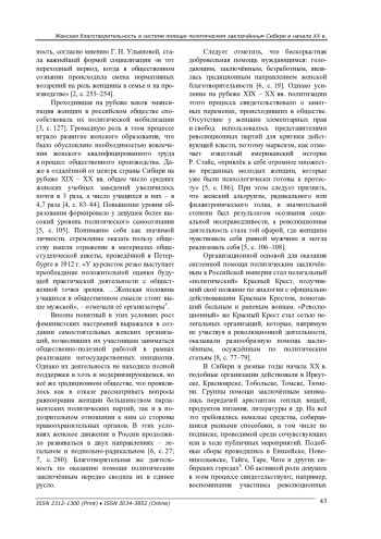 Рассматриваются причины и мотивы участия женщин в благотворительной помощи политическим заключённым Сибири в начале ХХ в., определяются виды и результаты этой деятельности. Отмечено, что ограничение возможности легально бороться за свои права приводило к вовлечению женщин в революционное движение, усиливая их роль в качестве агентов модернизационных процессов.