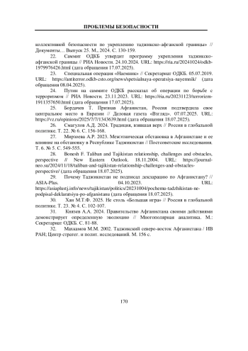 28. Bonesh F. Taliban and Tajikistan relationship, challenges and obstacles, perspective // New Eastern Outlook. 18.11.2004. URL: https://journal-neo.su/2024/11/18/taliban-and-tajikistan-relationship-challenges-and-obstacles-perspective/(дата обращения 18.07.2025).