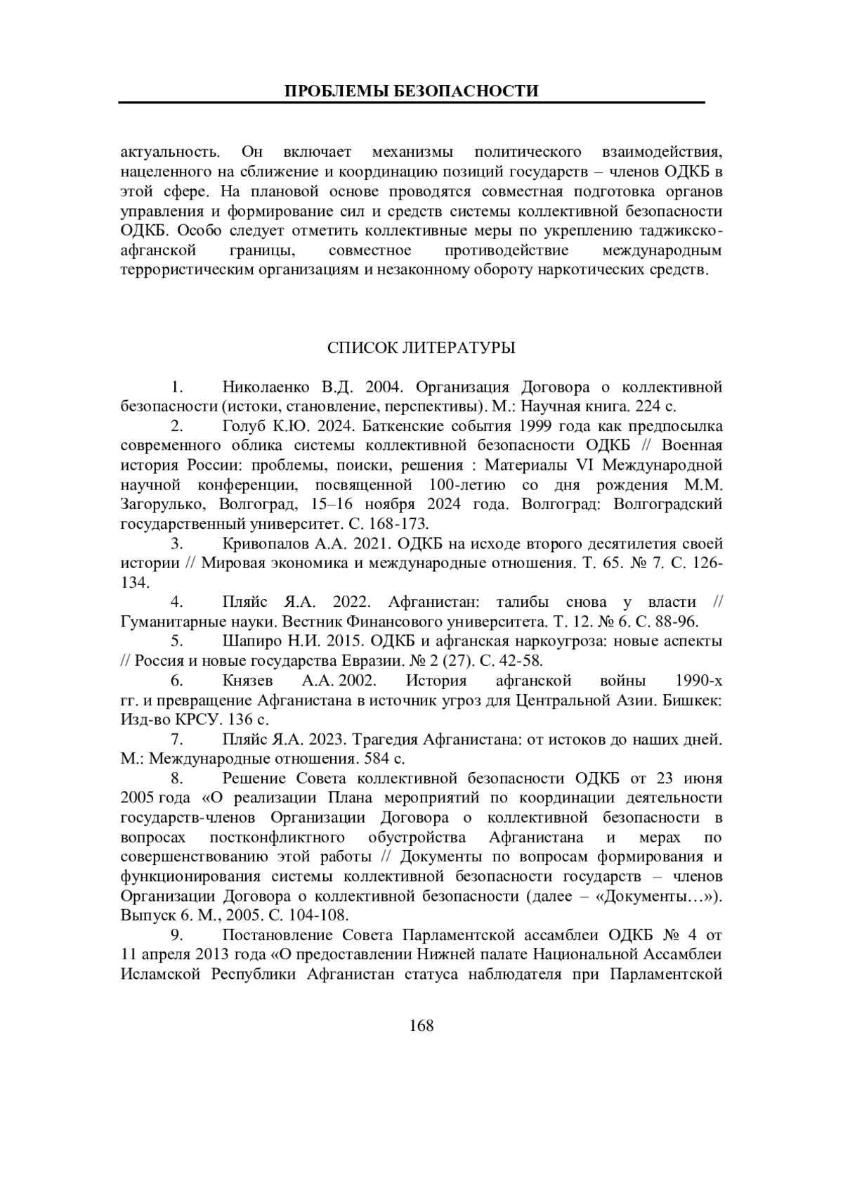 3. Кривопалов А.А. 2021. ОДКБ на исходе второго десятилетия своей истории // Мировая экономика и международные отношения. Т. 65. № 7. С. 126-134.