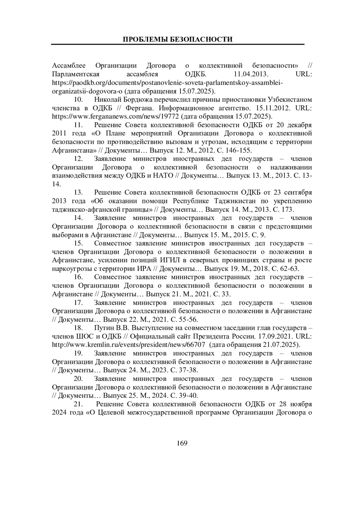 18. Путин В.В. Выступление на совместном заседании глав государств - членов ШОС и ОДКБ // Официальный сайт Президента России. 17.09.2021. URL: http://www.kremlin.ru/events/president/news/66707 (дата обращения 21.07.2025).