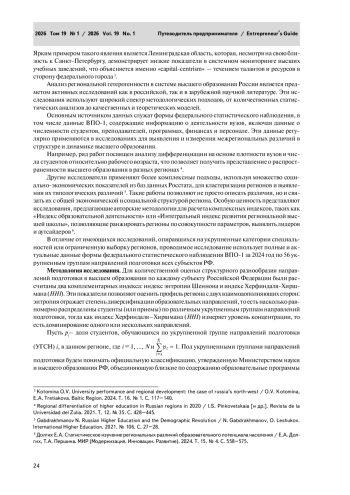 3. Kotomina O.V. University performance and regional development: the case of russia’s north-west / O.V. Kotomina, E.A. Tretiakova. Baltic Region. 2024. Vol. 16. № 1. P. 117-140.