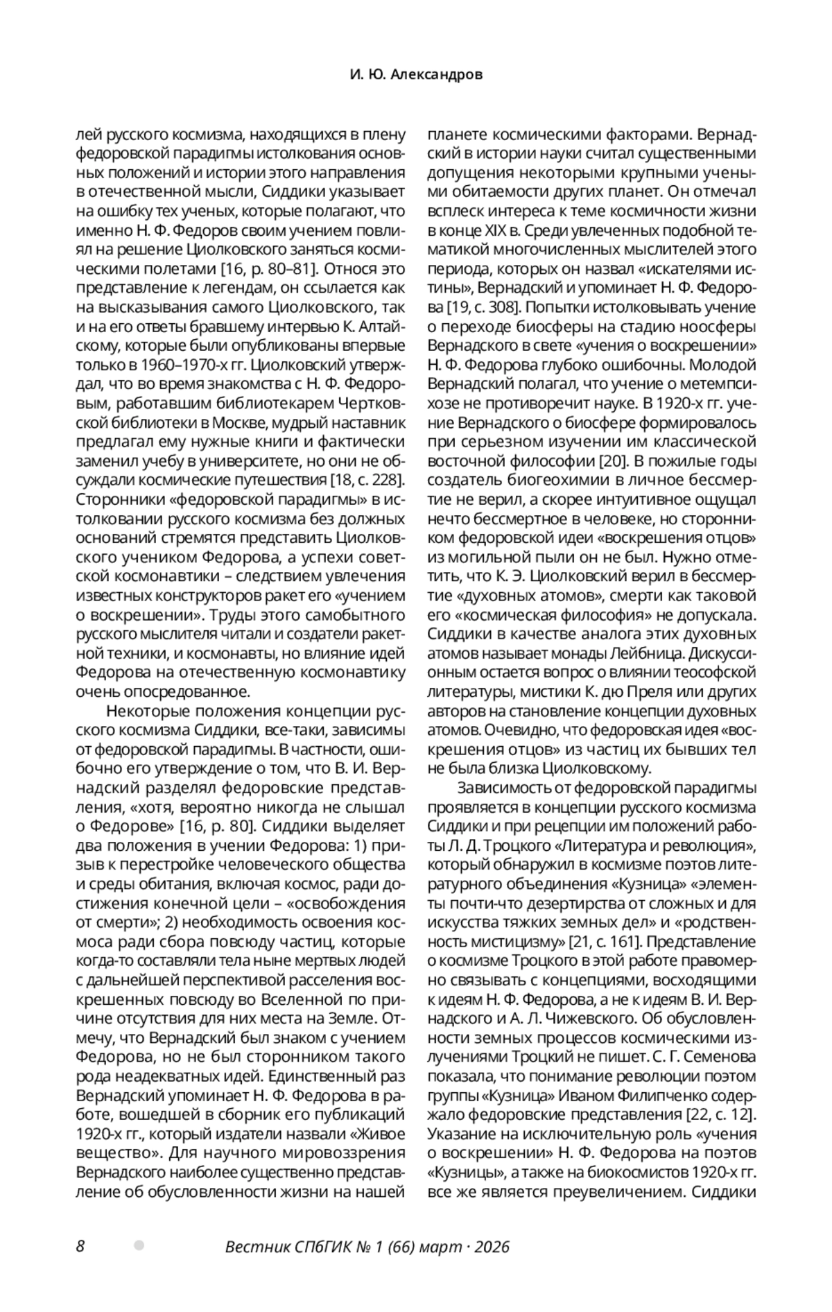 14. Субетто А. И. Русский Космизм в логике становления Ноосферизма в XXI веке // Труды Санкт-Петербургского государственного университета культуры и искусств. Санкт-Петербург, 2014. Т. 204: Живая Этика и Культура: идеи наследия семьи Рерихов в нашей жизни, вып. 2. С. 120-143.
