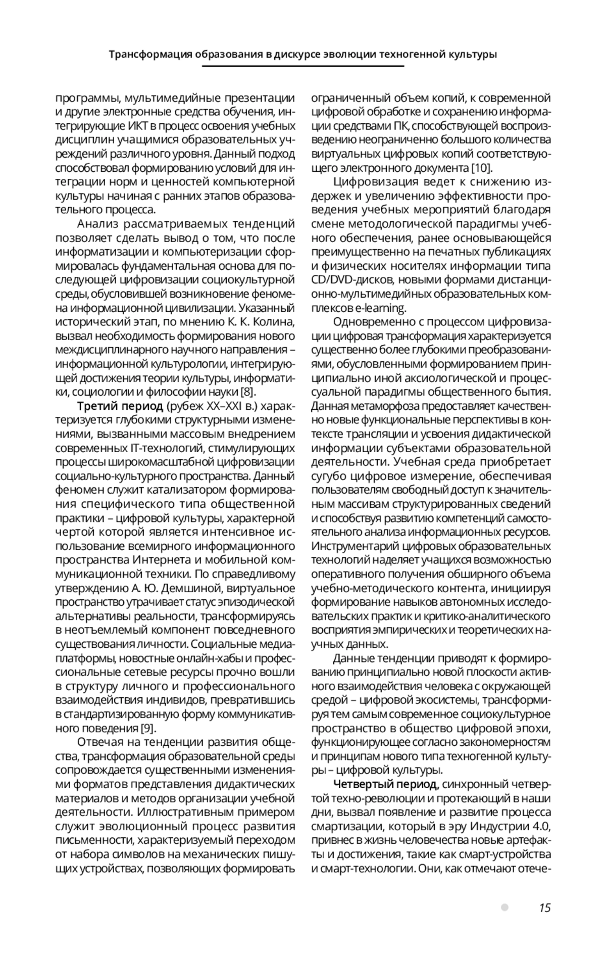 8. Колин К. К. Информационная культурология как синтетическая научная дисциплина для ответа на большие вызовы // Вестник Московского государственного университета культуры и искусств. 2024. № 4 (120). С. 18-27.