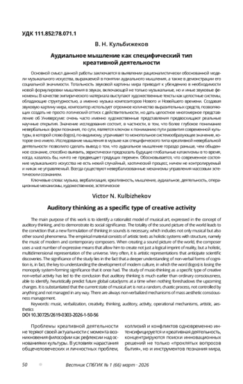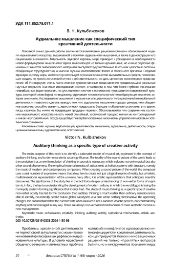 12. Кульбижеков В. Н. Некоторые размышления о внемузыкальных аудиальных феноменах // International Scientific and Practical Conference “World Science”. 2016. Vol. 5, № 9 (13). C. 44-48.