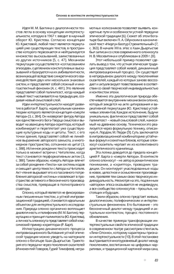 10.30725/2619-0303-2026-1-82-87 Якутский героический эпос олонхо – это уникальный многослойный текст, глубинная семантика и динамическая природа которого требуют применения современных теоретических подходов. Одним из таких подходов может стать теория интертекстуальности, позволяющая исследовать сложное взаимодействие текстов в культурном пространстве. Целью данного исследования является анализ олонхо и его сценической интерпретации в спектакле «Лики Олонхо» через призму ключевых концепций интертекстуальности. Теоретической основой работы стали труды классиков этой парадигмы, таких как философ, литературовед и культуролог М. М. Бахтин (1895–1975) [1; 2], французские литературоведы и семиотики Р. Барт (1915–1980) [3] и Ю. Кристева (р. 1941) [4; 5].