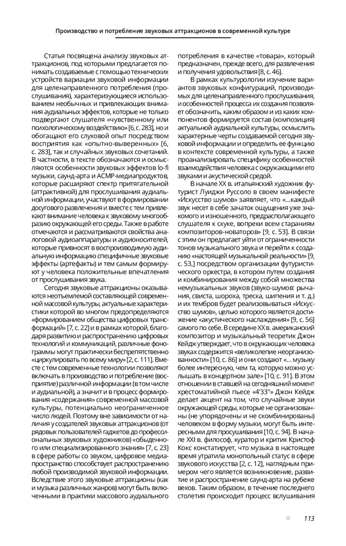 5. Казакова С. В. Феномен аудиальной культуры // Научно-технические ведомости Санкт-Петербургского государственного политехнического университета. Гуманитарные и общественные науки. 2011. № 2 (124). С. 235-241.