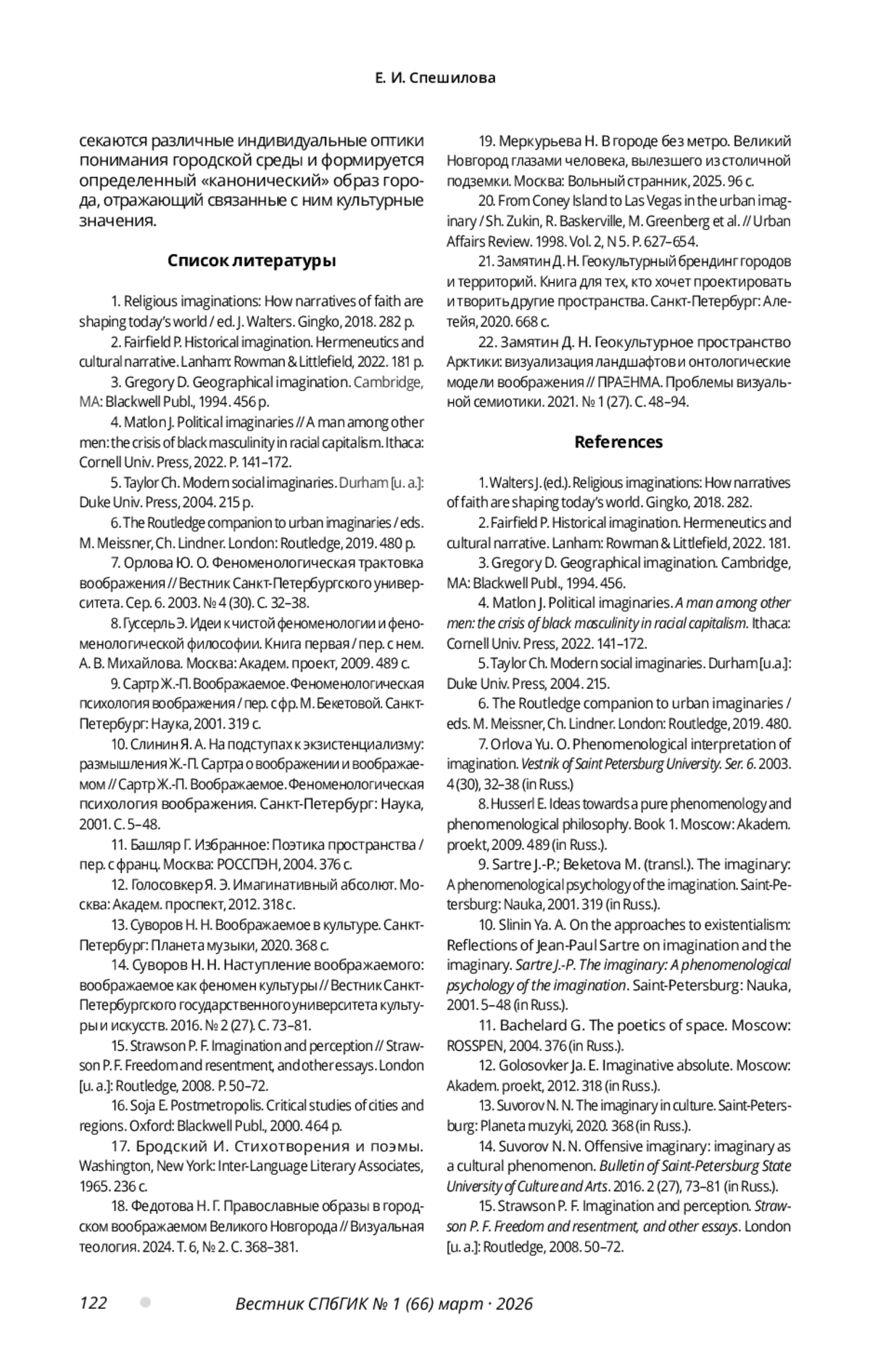 18. Федотова Н. Г. Православные образы в городском воображаемом Великого Новгорода // Визуальная теология. 2024. Т. 6, № 2. С. 368-381.