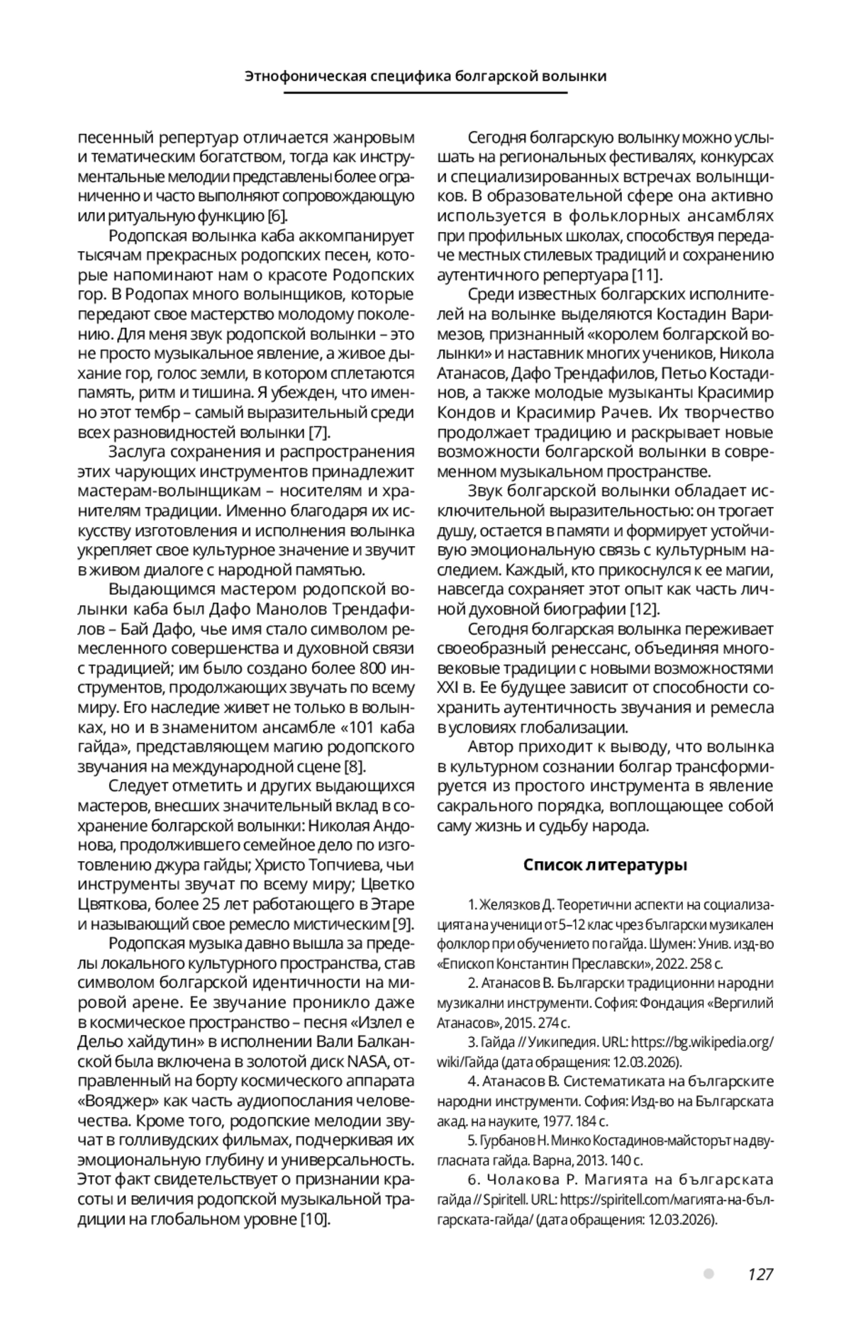 6. Чолакова Р. Магията на българската гайда // Spiritell. URL: https://spiritell.com/магията-на-българската-гайда/ (дата обращения: 12.03.2026).