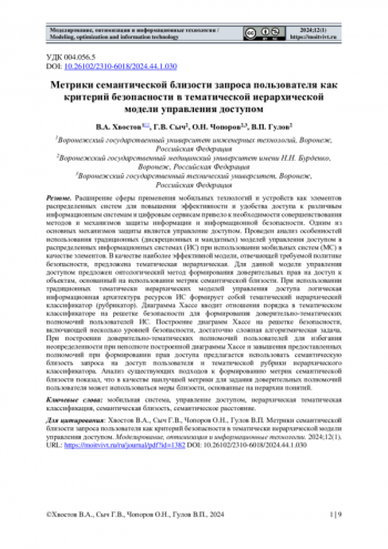 - Гулов В.П., Косолапов В.П., Сыч Г.В., Хвостов В.А. Организация управления доступом к медицинским информационным системам с использованием методов семантической близости. Системный анализ и управление в биомедицинских системах. 2021;20(2):79-87. DOI: 10.36622/VSTU.2021.20.2.010 EDN: XHSQTB