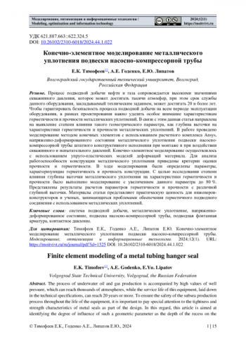 Процесс подводной добычи нефти и газа сопровождается высокими значениями скважинного давления, которое может достигать тысячи атмосфер, при этом срок службы данного оборудования, закладываемый техническим заданием, может достигать 20 и более лет. Чтобы гарантировать безопасность процесса подводной добычи на всем периоде эксплуатации оборудования, в рамках проектирования важно уделять особое внимание характеристикам герметичности и прочности металлических уплотнений. В связи с этим данная статья направлена на выявление степени влияния такого геометрического параметра, как глубина выточки на характеристики герметичности и прочности металлических уплотнений. В работе проведено моделирование методом конечных элементов с использованием расчетного комплекса Ansys, напряженно-деформированного состояния металлического уплотнения подвески насосно-компрессорной трубы штатного конструктивного исполнения при монтаже и при воздействии скважинного и испытательного давлений. Конечно-элементное моделирование осуществлялось с использованием упруго-пластических моделей деформаций материала. Для анализа работоспособности конструкции металлического уплотнения приведены критерии оценки прочности и герметичности. В ходе моделирования были определены параметры, характеризующие герметичность и прочность конструкции. С целью исследования степени влияния глубины выточки металлического уплотнения на характеристики герметичности и прочности было выполнено моделирование с увеличением данного параметра до 80 %. Представлены результаты расчетов параметров герметичности и прочности с различной глубиной выточки. Материалы статьи представляют практическую ценность для инженеров-конструкторов и ученых, занимающихся проблемами обеспечения герметичного подводного соединения с использованием металлических уплотнений.