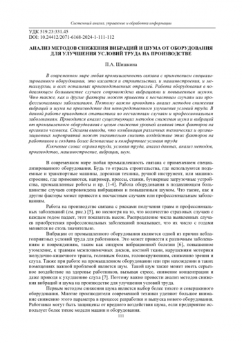В современном мире любая промышленность связана с применением специализированного оборудования, это касается и строительства, и машиностроения, и металлургии, и всех остальных производственных отраслей. Работа оборудования в подавляющем большинстве случаев сопровождена вибрациями и повышенным шумом. Что также, как и другие факторы может привести к несчастным случаям или профессиональным заболеваниям. Поэтому важно проводить анализ методов снижения вибраций и шума на производстве для непосредственного улучшения условий труда. В данной работе приводится статистика по несчастным случаям и профессиональным заболеваниям. Проводится анализ существующих методов снижения шума и вибраций от промышленного оборудования с целью снижения уровней влияния этих факторов на организм человека. Сделаны выводы, что комбинация различных технических и организационных мероприятий может значительно снизить воздействие этих факторов на работников и создать более безопасные и комфортные условия труда
