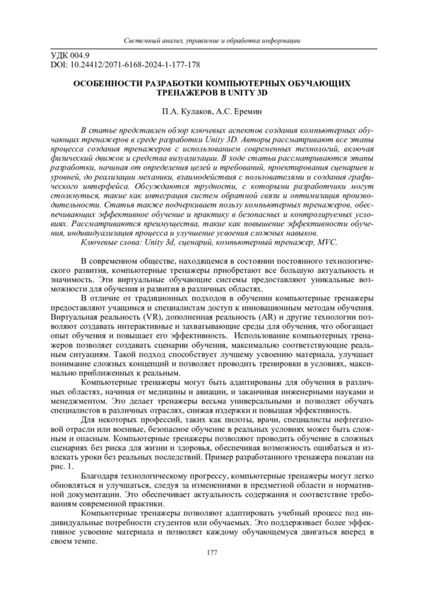 В статье представлен обзор ключевых аспектов создания компьютерных обучающих тренажеров в среде разработки Unity 3D. Авторы рассматривают все этапы процесса создания тренажеров с использованием современных технологий, включая физический движок и средства визуализации. В ходе статьи рассматриваются этапы разработки, начиная от определения целей и требований, проектирования сценариев и уровней, до реализации механики, взаимодействия с пользователями и создания графического интерфейса. Обсуждаются трудности, с которыми разработчики могут столкнуться, такие как интеграция систем обратной связи и оптимизация производительности. Статья также подчеркивает пользу компьютерных тренажеров, обеспечивающих эффективное обучение и практику в безопасных и контролируемых условиях. Рассматриваются преимущества, такие как повышение эффективности обучения, индивидуализация процесса и улучшение усвоения сложных навыков.