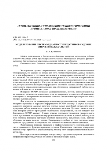 Статья: МОДЕЛИРОВАНИЕ СИСТЕМЫ ДИАГНОСТИКИ ДАТЧИКОВ СУДОВЫХ ЭНЕРГЕТИЧЕСКИХ СИСТЕМ (2024)
