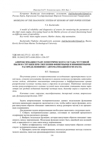 Модель надежности и диагностики датчиков контроля параметров работы главного двигателя судна, прогнозирование на основе Марковского процесса функционирования датчика исходя из разных состояний работоспособности.