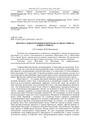 Статья: ПРОГРЕСС РОБОТОТЕХНИКИ В ПЕРЕХОДЕ ОТ ИНДУСТРИИ 4.0 К ИНДУСТРИИ 5.0 (2024)