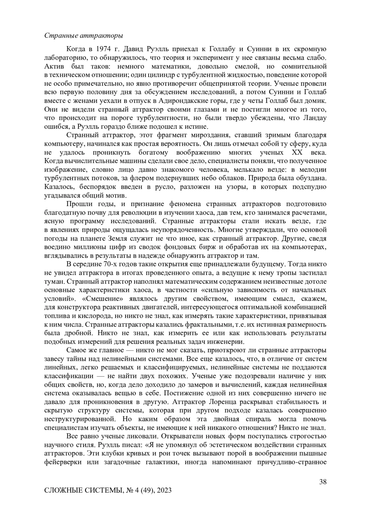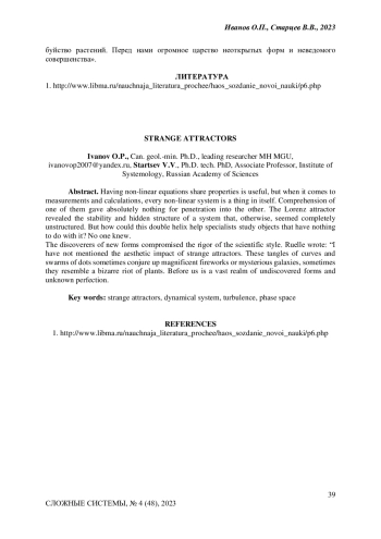 Открыватели новых форм поступались строгостью научного стиля. Руэлль писал: «Я не упомянул об эстетическом воздействии странных аттракторов. Эти клубки кривых и рои точек вызывают порой в воображении пышные фейерверки или загадочные галактики, иногда напоминают причудливо-странное буйство растений. Перед нами огромное царство неоткрытых форм и неведомого совершенства».