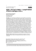 Статья посвящена исследованию научной проблемы использования старообрядцами в XVII–начале XVIII в. идеи «Третьего Рима». Актуальность темы обусловлена необходимостью углубления знаний о применении концепции Филофея Псковского в новых политических и религиозных реалиях. Новизна подхода к решению научной задачи заключается в обращении не только к анализу авторских сочинений старообрядцев, в которых они излагали вероучение, но и к их сборникам. В качестве характерного примера сборника в статье используется рукопись, составленная в 60-е годы XVII в. иноком Соловецкого монастыря Геронтием. Ее анализ позволил проникнуть в творческую лабораторию автора ярких публицистических произведений, послуживших основой идеологии Соловецкого восстания. Удалось показать не только применение составителем сборника идеи «Третьего Рима», но и процесс формирования представления о ней. Сделан вывод, что составитель сборника явно попытался наполнить новым содержанием формулу Филофея Псковского «Два Рима пали, третий стоит, а четвертому не быти», учитывая изменившийся политический и религиозный контекст. Подробное изложение концепции, осуществленное первыми противниками церковной реформы, позволило следующим поколениям старообрядцев при необходимости уверенно ссылаться на нее без изложения, о чем свидетельствует текст знаменитых «Поморских ответов».