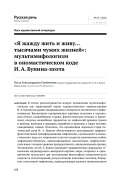 В статье рассматривается вопрос проявления мультимифологизма как характерной черты художественного мировоззрения И. А. Бунина на уровне индивидуально-авторского поэтического мифонимикона. Выявленные проприальные единицы отсылают к персонажам (богам, волшебникам, героям, фантастическим птицам и животным), локусам, волшебным предметам из мифологий древних греков и римлян, шумеров и аккадцев, индийцев и иранцев, а также египтян, скандинавов, славян. Отмечено, что организация звукового строя поэтической речи И. А. Бунина обеспечивается регулярными графикофонетическими трансформациями мифонимов, а уникальность ономастического кода его лирических текстов создается включением особых мифонимов-билексем, онимизированных апеллятивов, мифологических имен с низким уровнем прецедентности, окказиональных единиц. Установлено, что И. А. Бунин подчиняет традиционные сакральные генеалогии индивидуально-авторской картине мира, сопрягает и одновременно использует для экспликации философско-символического подтекста стихотворений, репрезентации ключевых мотивов, бинарных оппозиций мифонимы, принадлежащие разным национальным мифологическим ономастиконам. Автор приходит к выводу, что все лексические единицы бунинского поэтического мифонимикона связаны единой мировоззренческой установкой, направленной, с одной стороны, на преодоление автономности культурных миров, с другой — на сохранение культурного плюрализма