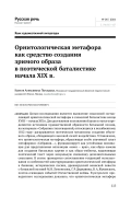 Целью исследования является выявление смысловой составляющей орнитологической метафоры в словесной баталистике конца XVIII — начала XIX в. Для достижения поставленной цели в статье определяются источники художественной образности батальной поэзии, на материале «Собрания стихотворений, относящихся к незабвенному 1812 году» раскрываются поэтические механизмы создания объемного образа, обладающего высокой силой воздействия. Установлено, что орнитологическая метафора, образующая особо значимый пласт метафорики «Собрания…», функционирует как устойчивая номинация для представления оппозиции «воин — враг», как образ-замена для создания батальных картин и как образ-эмблема, наделяющая поэтический текст через визуальную символику дополнительными смыслами. В статье проводится сопоставление тенденций использования и особенностей конструирования орнитологической метафоры в былинах, исторических песнях, древнерусской воинской повести с батальной поэзией М. В. Ломоносова, Г. Р. Державина, В. А. Жуковского, поэтов-очевидцев событий Отечественной войны. В результате проведенного исследования доказано, что орнитологическая метафора в качестве инструмента визуально ориентированного воздействия прошла путь от традиционно закрепленной семантики к индивидуальным контекстуальным смыслам, сохранив при этом свои основные, ядерные значения — создание образа воина, врага, сражения, победы. Утверждается, что словесная баталистика 1810-х гг., развивающаяся в свете смены художественных парадигм, была ориентирована на трансформацию изобразительной системы, постепенный отказ от аллегорических картин в пользу онтологически наполненного образа. В поэзии периода Отечественной войны 1812 г. выявлен процесс индивидуализации метафоры, пополнение орнитологических образов дополнительными символическими оттенками и смыслами, коррелирующими со сложившимся во время войны 1812 г. в русском обществе мировоззрением.