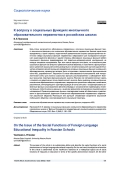 Цель статьи заключается в обосновании, определении и описании социальных функций такого социального феномена, как иноязычное образовательное неравенство. Целевая ориентация определяется, с одной стороны, недостаточной релевантностью широко распространенного типичного набора социальных функций неравенства в образовании для исследования конкретного анализируемого феномена. С другой стороны, обоснование социальных функций любого социального феномена предопределено той теоретико-методологической конструкцией, на которую опирается исследователь. При этом нельзя отрицать того факта, что осмысление роли социальных функций как внешних проявлений свойств объектов, их назначения в функционировании целостной социальной системы всегда были и остаются актуальной научной задачей. В качестве методологической основы для определения основных социальных функций иноязычного образовательного неравенства автором была использована парадигмальная функциональная сетка AGIL, разработанная Т. Парсонсом. В статье обосновывается использование этой методологической схемы для анализа социальных функций, рассматриваемого с соблюдением базовых принципов структурно-функционального анализа. Реализуя эту методологическую модель и опираясь на дедуктивную логику теоретического анализа, были выявлены основные функции иноязычного образовательного неравенства в современном российском обществе: селективная, регулятивная, стимулирующая и стратифицирующая. В статье описаны и охарактеризованы выявленные функции анализируемого феномена. Выводы и умозаключения подтверждены многочисленными статистическими данными и анализом результатов эмпирических социологических исследований. Проанализированные функции подтверждают вывод об объективном существовании и функциональной заданности иноязычного образовательного неравенства в современном российском обществе. Реализация этих функций способствует сохранению социальной стабильности общества и воспроизводству его социальной структуры.